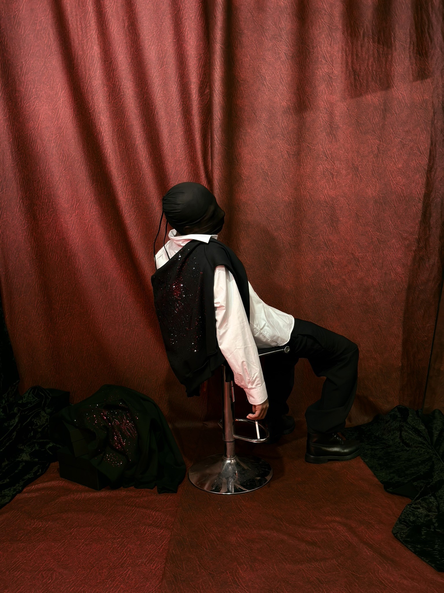 Face mask creada a base de tela de malla fina color dark noir con cierre de cordón de algodón con detalle metálico. Costura francesa. Edición limitada.